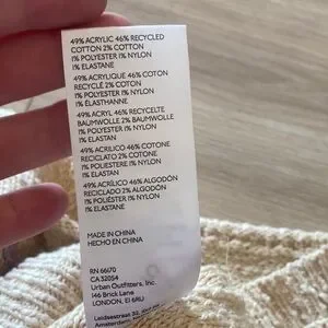 49% acrylic, 48% cotton, 1% polyester, 1% nylon, 1% elastane