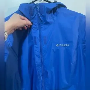 Columbia Bright Blue Hooded Rain Jacket Mesh Lining Sz M