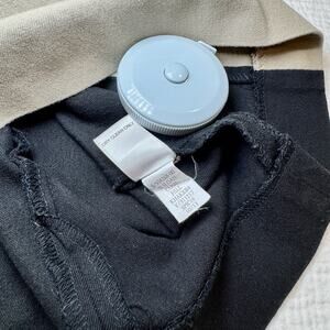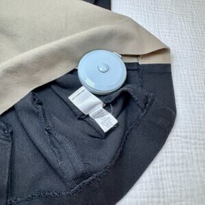 Banana Republic Sloan colorblock sheath dress in Women’s 2P Petite features a structured square neckline, sleeveless silhouette, wide waistband, and slimming black side panels with a cream bodice and beige skirt for a polished, tailored bodycon fit. Crafted from a stretch cotton blend (60% cotton, 35% rayon, 5% spandex; dry clean only), this classic business casual, office, career, minimalist, modern, neutral-tone, workwear staple offers comfortable structure and a flattering petite-length cut at approximately 31” shoulder to hem.