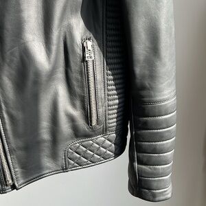 - size men’s Large, fits slim! Very fitted , 19 inches shoulder seam to shoulder seam, 22 inches pit to pit 20 inches along hemline side to side, 21.5 inch front zipper length ( all measurements with jacket zipped up on tighter zipper)