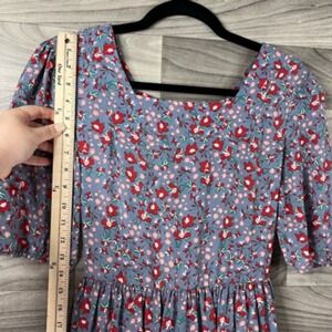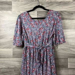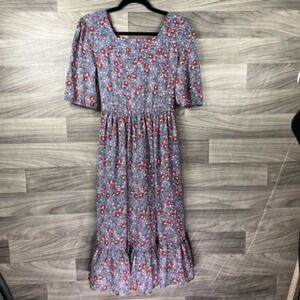 Citrus Lemon Womens Dress Gray Midi Floral Square Neck Short Slv M Granny Core