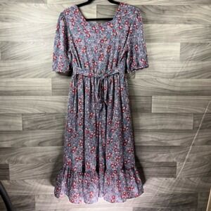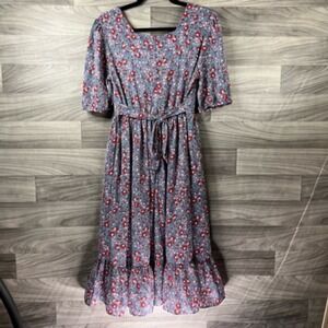 Citrus Lemon Womens Dress Gray Midi Floral Square Neck Short Sleeve Ruffle M