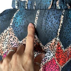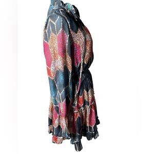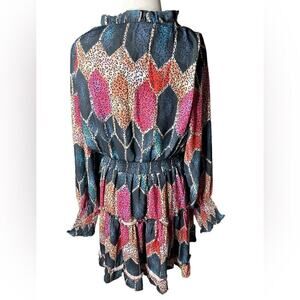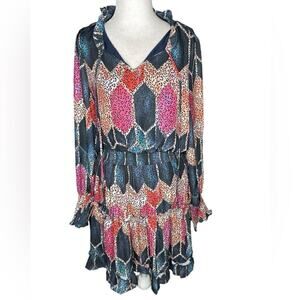 Mulla Long Sleeve Multicolor Animal Print Mini tiered Dress Medium Pink & Blue