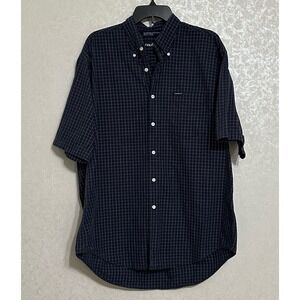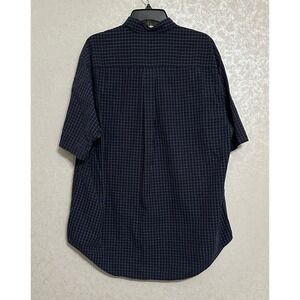 Nautica Short Sleeve Button Down Shirt Navy Blue Geometric Checked Plaid Men's L