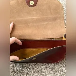 Made from rich brown leather with signature embossed grape leaf logo and brushed brass-tone hardware, this bag is the ideal size for everyday essentials while still feeling elevated and unique.