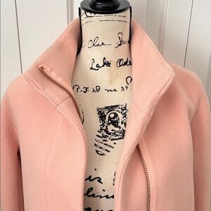 Gorgeous pale peachy pink J. Crew coat in excellent condition. Stadium coth Nello Gori wool, hidden zippered front with two front pockets. Cream satin lining. Size 2 runs big in my opinion could fit a 4 also, please go by measurements- bust measures 19 inches across and 31 inches long.