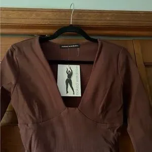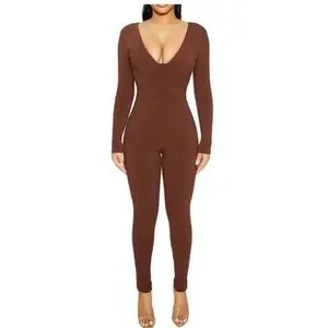 (NWT) Naked Wardrobe Brown Long Sleeve Jumpsuit
