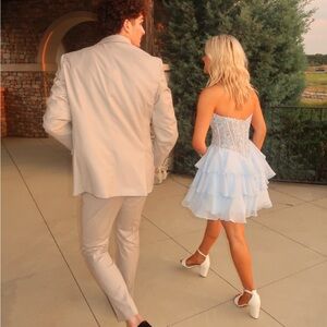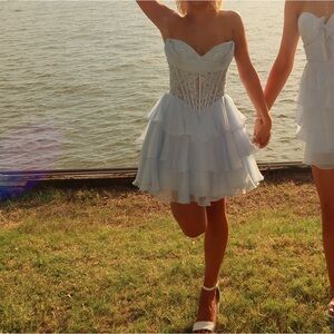 Stunning light blue corset dress with intricate lace details. Perfect for special occasions. (Either size 2 or 0… will double check if asked; but fits both) WORN ONE TIME
