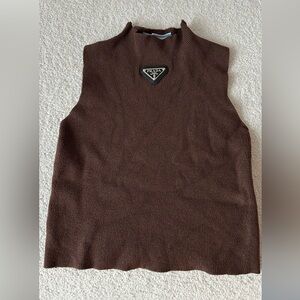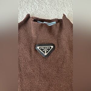 Luxurious Prada turtleneck sweater. Rich brown hue. Perfect for a sophisticated look.