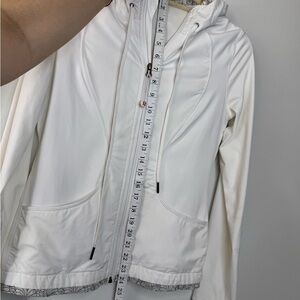 Stay stylish and comfortable with this sleek white hooded jacket. Perfect for any casual outing.