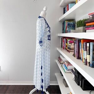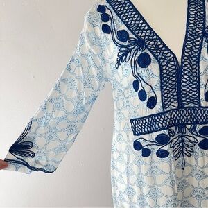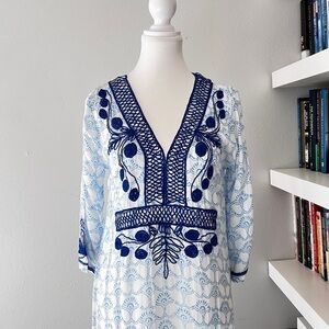 Roberta Roller Rabbit Blue Boho Long Sleeve Tunic Cover Up Dress XS