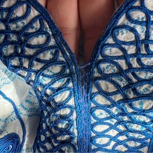 Beautiful cover up or dress! Perfect condition other than in the last photo shows that the threading on the chest area is a little loose.
