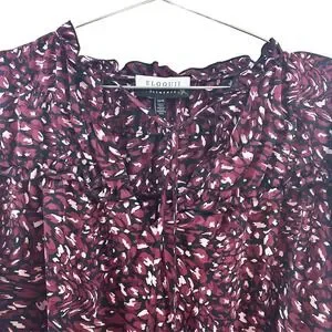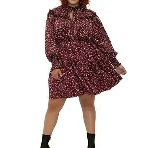 ELOQUII Long Sleeve Floral Print Mini Dress - 14/16 - black, maroon, white