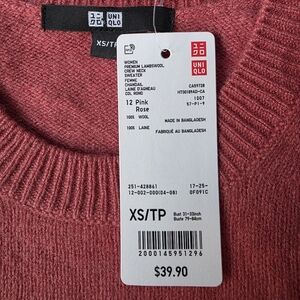 New With Tags: UNIQLO Premium Lambswool Crew Neck Sweater– Size XS – Salmon Pink