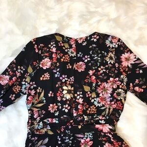 ECI Floral Print Waist Tie Jumpsuit Blk Multi 14