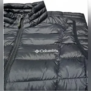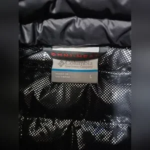 Columbia Men's Black Voodoo Falls 590 Turbodown vest with Omni- Heat and reflective inside. Size Large. Color may vary due to camera lighting.