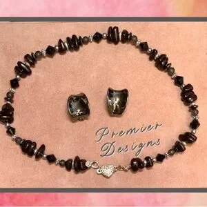 This elegant jewelry set features a stunning gemstone and silver necklace with magnetic heart clasp. (18”)The set includes beautifully crafted Hematite earrings that can be worn as pierced post or clip on. Adding a touch of sophistication to any outfit. The clip option for the earrings and magnetic clasp on the necklace make accessorizing easy for those with dexterity issues.