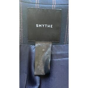 Smythe blazer, quiet luxury tailoring, navy pinstripe blazer, tailored power jacket, womens designer blazer size 6