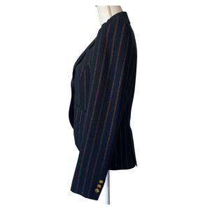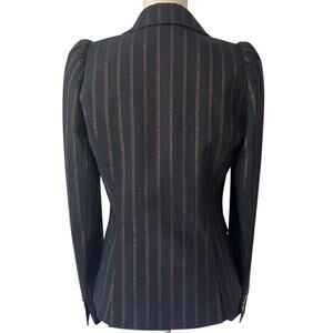 Smythe Navy Copper Pinstripe Puff Shoulder Blazer Tailored Jacket Power Size 6