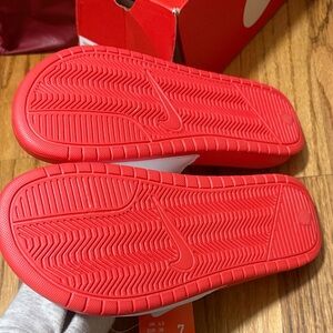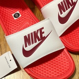 Nike Red and White Benassi JDI Slide Sandals NWT in box