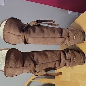 I bought these on an online platform and wore them a couple times. I'm not sure if these are tan or mauve or mixed. Them seem to have a pinkish tint to them? I just have too many boots and am running out of room! These are comfortable as they are but the insole fur is flat. Not gone but pressed flat. They were like that when I got them and I was going to put gel insoles in them but they were comfortable as they are.