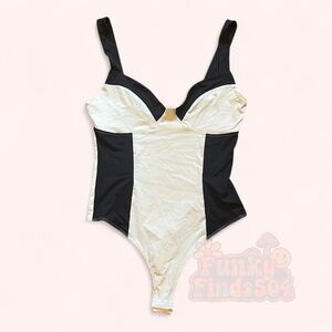 Le Lis NWOT Black Ivory Colorblock Sweetheart Neck Bodysuit Size M