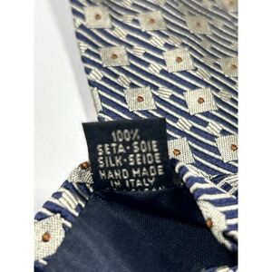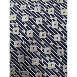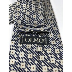 Olmo Mens Silk Tie Navy Blue Silver Geometric Squares Dots Hand Made Italy
