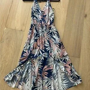 L*Space Tropical Leaf Midi Dress in Blue and Pink