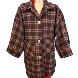 Vintage Bally 85% Wool Plaid Coat Made in Italy Size 42 Chalet Chic