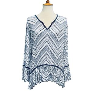 Geometric Patterned Asymmetric Top in Blue & White by Living Doll, Size XL