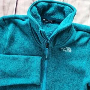 North Face Kid's "Crescent Full Zip" Mock Neck Fleece Jacket Heathered Blue Turquoise | Big Girl's Size Extra Large.