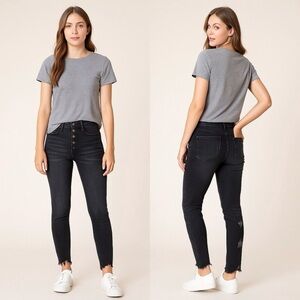 👉 🔥 KANCAN Black High Rise Skinny Jeans | Shark Bite Hem | Button Fly | 0/23