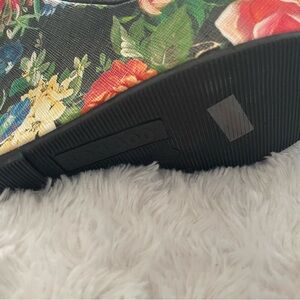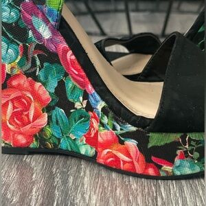 NWT Floral Black Wedge Sandals with flaw