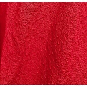 The Anthropologie Tie-Front Cover-Up Dress in red features a V-neckline, 3/4 puff sleeves, and a midi length slit. Made from lightweight viscose knit fabric, this dress is perfect for casual summer occasions with its pleated and ruffled accents. The XXS size fits the angelic and Barbie-like character of the dress, making it a stylish and comfortable choice for beach-themed outings.
