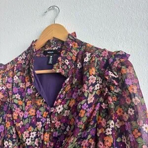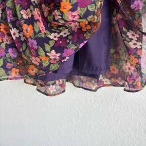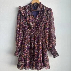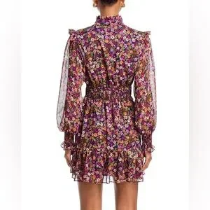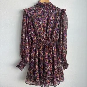 Aqua Multicolor Floral Long Sleeve Ruffled Mini Smocked Dress Exclusive Small