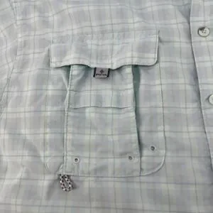 Columbia Super Bahama Plaid Short Sleeve Fishing Shirt Men's M Light Blue
