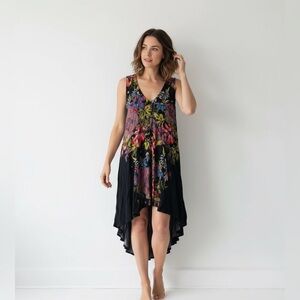 Free People Floral High-Low Skirt - Black and Multicolor