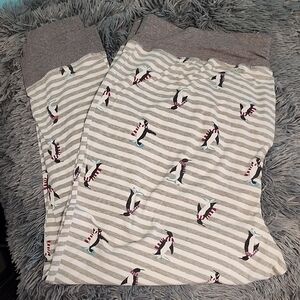 Comfortable gray striped pajamas with penguins by Cacique. Long sleeve top and joggers bottoms. Soft fabric for a restful night.