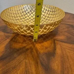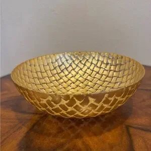 Stunning gold bowl with a woven texture. Ideal for stylish decor. Made in Turkey.