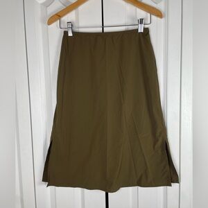 Uniqlo Slip Skirt Women’s S Olive Green A-Line Side Slits Elastic Waistband EUC