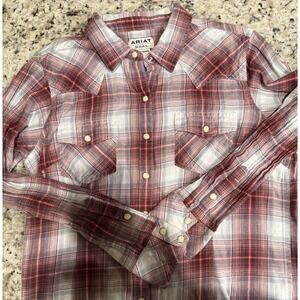 Ariat Real Shirt Womens Large Red Plaid Long Sleeve Pearl Snap Western Top L. Condition is Pre-owned - Excellent. Shipped with USPS Ground Advantage.
