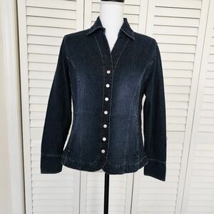 Christopher & Banks Denim Jacket Size S Blue Snap Front V Neckline Pockets NWT