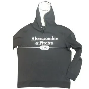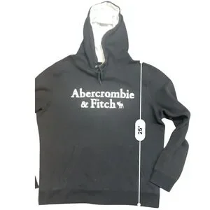 Abercrombie & Fitch Mens Soft Fleece Hoodie Black Logo Pullover Sweatshirt L