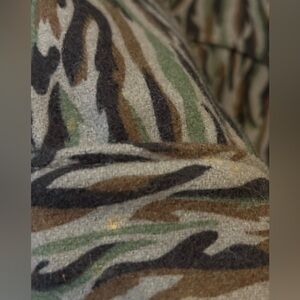 This is the best condition vintage 100% wool piece I have ever seen. Made in the USA tree bark camouflage 100% wool Woolrich button down shirt jacket. Based on the tags, this could be from late 80’s-early 90’s. 2 chest pockets, 2 hand pockets and no loose buttons. I found the tiniest little stain on the right sleeve cuff (see photo) and a couple little spots (see photo) on the inside. This is dry clean only so I’m hoping they come out once dry cleaned. No holes or rips. Very impressive condition! Men’s medium but may fit as modern large on some men. Flat lay measurements: 24 inches pit to pit, 24.5 inches sleeve length, and 27 inches shoulder to hem.