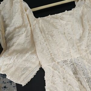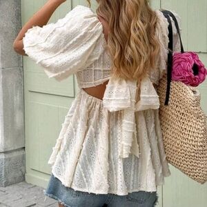 New Cream Eyelet Blouse Top, Open Tie Back, Quality Material