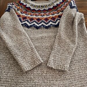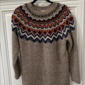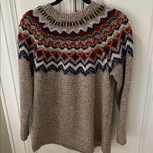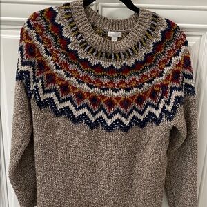 J Jill Fair Isle Southwest Nordic Knit Chunky Cozy brown pullover sweater size M