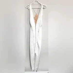 NWOT Cult Gaia Renata Draped Fringe Halter Gown Off White Bridal Wedding Size M