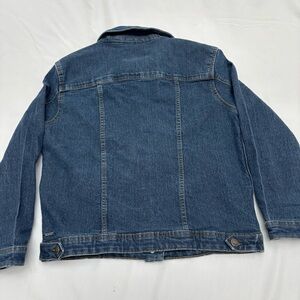 Classic blue jean jacket. Stylish and versatile. Perfect for casual wear.