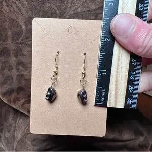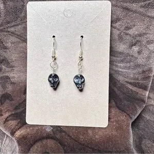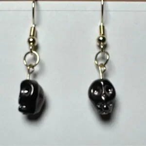 Black skull earrings handmade gold tone color