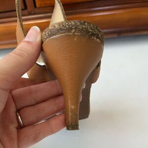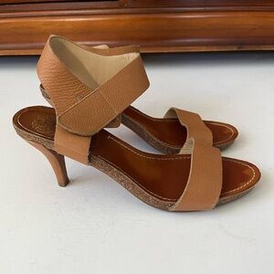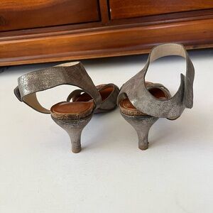 Vince Camuto Metallic Silver & Dark Nude Leather Ankle Strap Heels Womens Size 8